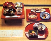 もともとは僧侶の食事であったものですが、現在では法事、法要などのお清めとして広く親しまれるようになりました。時代の流れと共に菜も多く豪華になる傾向にありますが、本来は粗食を第一とした料理ですから、酒をつけることはありません。